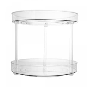 Especificações Técnicas: Conteúdo da Embalagem: 1 Organizador Giratório de 2 Andares Material: Plástico Dimensões do Produto: 27 cm (L) x 27 cm (C) x 22 cm (A)