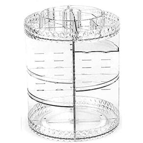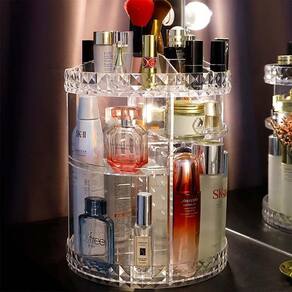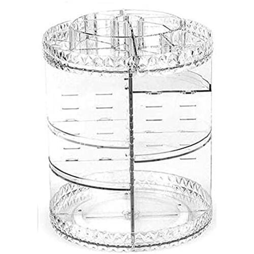 Organizador de Maquiagem Giratório 360º O MAIOR - 35 CM DE ALTURA E 28 CM DIÂMETRO COM BANDEJAS REMOVÍVEIS. O produto apresenta design moderno, bandejas com várias divisórias para acomodar cremes, perfumes, primes, lápis de olho, rímel, batons, pincéis, etc. O Organizador de Maquiagem Acrílico foi desenvolvido com alto padrão de qualidade, visando garantir praticidade e organização de todos os cosméticos e itens de maquiagem para salões, casas etc. Grande capacidade de armazenamento e facilidade de manuseio com a rotação de 360º. Bandejas Duráveis e resistentes são fortes o suficiente para suportar os produtos pesados. São removíveis, deixando na altura que desejar, cabendo mais produtos. Rotação Silenciosa e com maior estabilidade. Pode lavar(Não usar álcool). Este item é fácil de montar. Material: Acrílico resistente incolor Tamanho: 35 (A) x 28 (L) cm