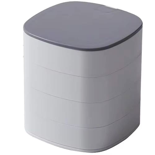 Com nosso organizador giratório, você terá todos os seus cosméticos e joias sempre à mão e perfeitamente organizados. Seus 4 andares espaçosos e divisórias ajustáveis permitem personalizar o armazenamento de acordo com suas necessidades. O espelho integrado facilita a aplicação da maquiagem e o design moderno complementa qualquer ambiente.