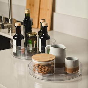 Detalhes do produto Sistema giratório 360 garante mais praticidade e fácil acesso aos itens Visual minimalista e super transparente Ideais para organizar utensílios na cozinha Organização funcional que otimiza espaços e facilita a rotinaInformações TécnicasAltura:4 cmLargura:25,5 cmComprimento:25,5 cmPeso:0.15 kgMaterial:PS+PET+AÇOO Organizador da Linha Clear traz mais praticidade e funcionalidade para sua rotina. Com sistema giratório 360, permite fácil acesso aos itens e utensílios, facilitando a organização em diversos ambientes. Seu design minimalista, com acabamento super transparente, combina com qualquer espaço, deixando tudo mais bonito e organizado. É perfeito para manter seus itens sempre à mão e bem organizados.Conteúdo da embalagem1 Organizador giratório baixo Ou Linha Clear