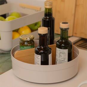 Com 25,5cm de diâmetro, ele conta com divisórias internas de bambu que facilitam a separação dos itens, evitando bagunça e otimizando espaços.
