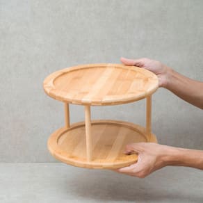 Esse é o organizador giratório de bambu 2 andares da OIKOS.Prático: seus objetos bem acomodados e à vista. mais praticidade na hora de guardar e usar seus acessórios. tudo ao alcance da sua mão!Giratório: o organizador não sai do lugar, mas gira para trazer para mais pertinho o que ficou do outro lado.Versátil: é a pedida para expor seus itens favoritos nos mais variados ambientes, do quarto à cozinha. acomoda bem desde perfumes e bijuterias e itens de higiene pessoal como potes, temperos e taças. Decorativo: bacana para usar em diferentes ambientes, da cozinha ao banheiro. o design moderno e o tom natural deixam a casa mais charmosa, podendo fazer parte da sua decoração.Feito de bambu: material leve e ecologicamente correto.Durável e higiênico: o bambu é resistente e tem propriedades que evitam a proliferação de bactérias, só precisa lavar e secar de acordo com as recomendações, combinado?Dimensões do produto:Altura: 19cmLargura: 28cm