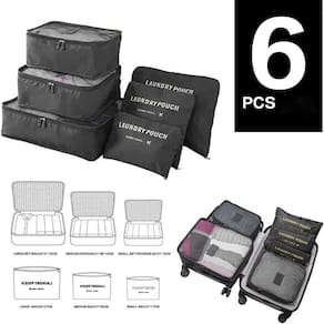 Kit Organizador de Malas 6 em 1 para Viagem - Preto