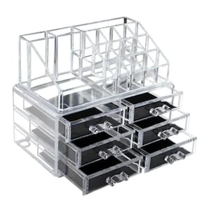Material: Acrilico O ChatGPT disse:Organizador De Maquiagem Acrílico com 6 Gavetas e 17 Divisórias para CosméticosEsse lindo porta-maquiagem de acrílico possui 20 divisórias, sendo 16 compartimentos para organizar perfeitamente batons, gloss, bases e outros itens, além de 4 espaços de tamanhos diferentes para guardar lápis, pincéis, cosméticos e acessórios.Destaques do Produto:Organização e Praticidade: Ideal para manter seus itens de beleza bem organizados e de fácil acesso na bancada, penteadeira ou Versátil: Pode ser utilizado como duas peças separadas para melhor adaptação ao seu espaç para Presentear: Perfeito para quem adora maquiagem e produtos de beleza.Gavetas com Pegadores: Acabamento sofisticado e de fácil Capacidade: Possui 6 gavetas e 17 compartimentos para batons e acessórios.Especificações Técnicas:Cor: Transparente.Material: Acríões: 18 x 22 x 17 cm. Marca: Não Informado Ean: 3523654112440