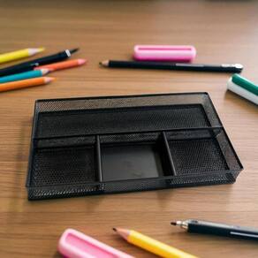 Com quatro divisórias, ele permite organizar diversos itens como canetas, lápis, clipes, blocos de nota, e outros acessórios de papelaria, facilitando o dia a dia e otimizando seu tempo.
