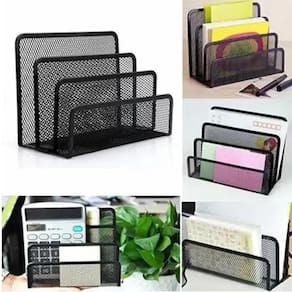 Organizador de Mesa em Metal – Porta-Arquivos, Pastas e Cartas Mantenha sua mesa sempre arrumada com o Organizador de Mesa em Metal. Compacto, resistente e elegante, ele permite organizar até 3 pastas e diversos documentos, otimizando seu espaço de trabalho e trazendo mais praticidade ao dia a dia. Benefícios do Produto Organização inteligente – comporta pastas, papéis, blocos de notas, cartas, envelopes e documentos em geral. Visual moderno – design clássico em malha de metal com acabamento preto fosco, elegante e durável. Praticidade imediata – estrutura aberta para fácil acesso e visualização dos documentos. Multifuncional – ideal também para armazenar canetas, lápis, grampeadores, marcadores e outros acessórios de escritório. Durabilidade garantida – feito em aço resistente, com pintura em pó antiderrapante e proteção contra ferrugem. Pronto para usar – não precisa de instalação. Dimensões Comprimento: 17,5 cm Largura: 8 cm Altura: 13,0 cm Mais organização e praticidade para sua mesa de trabalho. Marca: Não Informado