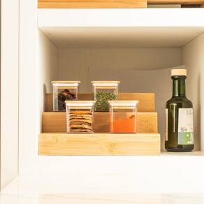 Características: - Organizador multinível para armário - Feito em bambu - Design funcional e prático - Setorização e organização dos itens - Medidas: profundidade de 25cm, largura de 25cm e altura de 13cm