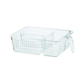 Características O Organizador de Multiuso é ideal para organizar alimentos em armários e geladeiras ou gavetas. Possui cabo que facilita o transporte. Fabricado em plástico transparente de alta resistência, permite a visualização dos objetos em seu interior para facilitar a escolha do que deseja usar. Pode ser utilizado também em gavetas, banheiro e closet para organizar objetos como talheres, cosméticos, objetos de higiene pessoal e bijuterias.