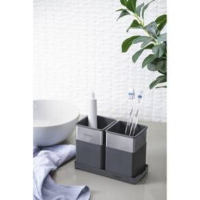 O Organizador Multiúso Tramontina une aço inox de alta durabilidade e poliestireno resistente em um design inteligente e sofisticado. Versátil, ele se adapta a diferentes ambientes: no banheiro, mantém escovas de dente e itens de higiene sempre organizados; na penteadeira, funciona como porta-maquiagens, oferecendo praticidade e fácil acesso; no escritório, acomoda materiais de trabalho; e no buffet, organiza talheres com eficiência. Uma solução prática para otimizar espaços e trazer um toque de elegância ao seu dia a dia.