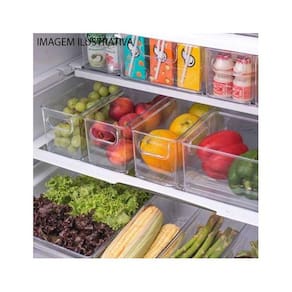 Transparente em Poliestireno. Multifuncional e prático. Resistente e de prático manuseio, deixa sua despensa e geladeira organizada de forma rápida e fácil, basta encaixar. Excelente para otimizar o espaço e manter em ordem. A peça facilita a hora de buscar o objeto desejado.
