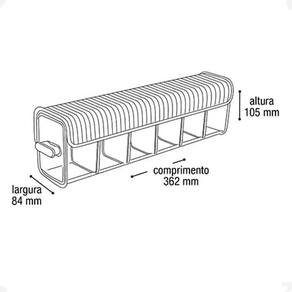 Dimensões: 362 x 84 x 105 mm comprimento x largura x altura