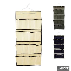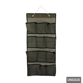 Organizador Multiuso TNT 90x40cm 12 Divisóri O Organizador Multiuso em TNT de Pendurar é a solução perfeita para quem busca manter o ambiente organizado, aproveitando espaços verticais de forma funcional e prática. Com um design versátil, leve e resistente, ele é ideal para armazenar diversos itens do dia a dia com facilidade, seja em casa, escritório, quarto ou área de serviço.\nCom Dimensões de 90cm de altura por 40cm de largura, e com 12 Abas para organizar, tamanho ideal para pendurar em portas, paredes, armários ou closets, maximizando o aproveitamento do espaço. Leve, durável, respirável e fácil de limpar, garantindo resistência sem perder a praticidade. Equipado com alças reforçadas para fixação segura em cabides, ganchos ou varões, permitindo instalação rápida e sem complicações.\nDisponível em cores.\nEspecificações:\nMarca : RIO DE OUR\nTipo de material : TNT\nCores ou Estampa : Color\nDimensões do Produto : 90 X 40 X 1 CM\nDimensões da Embalagem : 40 X 22 X 1,5 CM\nPeso Bruto (Gramas) : 0.104