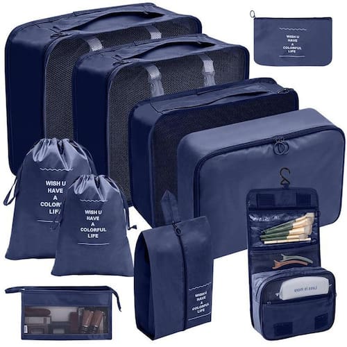 Organizador necessaire para mala de viagem kit 10 peças coleção unique - azul marinho nosso kit organizador para mala de viagem de 10 peças é a solução perfeita para tornar suas viagens mais tranquilas e livres de estresseé o companheiro perfeito para qualquer viajante que busca praticidade e eficiência.