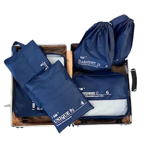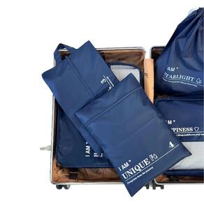 Organizador necessaire para mala de viagem kit 6 peças coleção unique - azul marinho nosso kit organizador para mala de viagem de 6 peças é a solução perfeita para tornar suas viagens mais tranquilas e livres de estresseé o companheiro perfeito para qualquer viajante que busca praticidade e eficiência. Economia de espaço: com nossos organizadores de mala, você maximiza cada centímetro da sua bagagem. Comprima suas roupas e acessórios de forma eficiente, permitindo que você leve mais itens sem ocupar muito espaço. Organização simplificada: adeus, bagunça nossos organizadores permitem que você classifique e separe suas roupas por categorias. De roupas íntimas a roupas de banho e acessórios, tudo ficará perfeitamente organizado e fácil de encontrar. Livre de rugas e amassados: mantenha suas roupas impecáveis durante toda a viagem. Nossos organizadores evitam que suas roupas fiquem amontoadas na mala, garantindo que você chegue ao seu destino com um visual perfeito. Acesso rápido e prático: não perca tempo procurando por itens perdidos na sua mala. Com nossos organizadores, você terá fácil acesso a tudo o que precisa, seja durante o voo ou ao chegar ao seu destino. Higiene garantida: mantenha suas roupas limpas separadas das sujas. Nossos organizadores permitem que você mantenha a higiene em dia, evitando o contato entre peças sujas e limpas Tamanho: Cubo 5: 40x32cm Cubo 6: 34x28cm Necessaire 4: 38x26cm Necessaire 3: 38x23cm Sacos 2: 40x30cm Material: poliéster e plástico