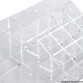 Mantenha sua penteadeira organizada com o Organizador para Acessórios Hana 22x12,5 cm com Divisória Ordene! Com 12 divisórias para organizar seus batons, 2 divisórias para lápis e acessórios, 1 compartimento baixo e 1 compartimento alto para cosméticos, organiza e facilita o acesso às suas maquiagens! Produzido em material leve e resistente, é ideal para manter suas maquiagens e acessórios sempre organizados!