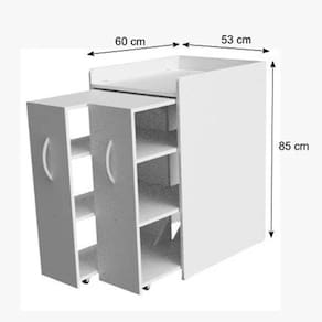 As prateleiras inferiores podem acomodar livros em pé de até 23 cm de altura e aceita os seguintes formatos padrão de mercado: 125 x 180 mm, 110 x 180 mm, 140 x 210 mm e 160 x 230 mm.