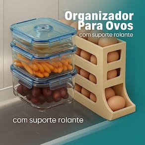 Organizador de Ovos com Suporte Rolante ? Praticidade e Organização na Sua Geladeira