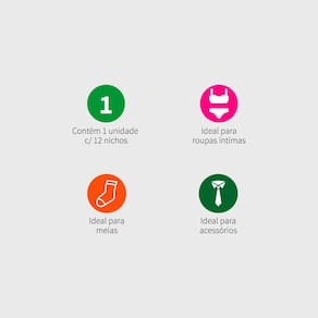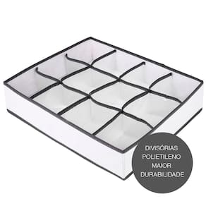 O Organizador 12 Divisórias Vizapi Classic Branco Cinza é ideal para quem deseja otimizar o espaço e a organização de armários e closets, com 12 nichos separadores, permite uma visualização e escolha mais rápida das suas peças. É a solução perfeita para organizar roupas íntimas, meias, gravatas, cintos e etc. Tamanho do Organizador: 43x35x9cm