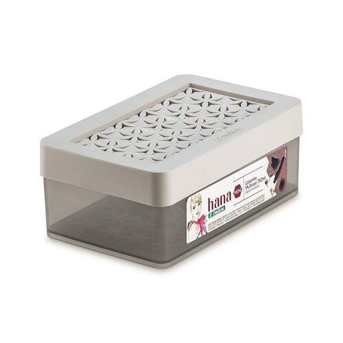 A linha de organizadores Hana foi especialmente desenvolvida para as necessidades da mulher. Praticidade, organização e carinho por acessórios traduzidos em organizadores com e sem divisórias. Uma linha completa para organizar e decorar ambientes como salas, quartos e banheiros com muito charme e elegância. A Organizador Plástico Multiuso Gelo 750ml Hana Ordene é ideal para organizar acessórios pequenos, como grampos e borrachinhas de cabelo, bem como batons. Ela possui tampa ventilável, para não abafar os objetos guardados nela. São infinitas possibilidades de organização e decoração de quartos, banheiros e salas! Ela, ainda, auxilia no dia a dia das mulheres da mulher moderna, para que fique tudo organizado e à mão.