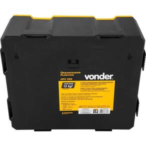 Conteúdo da Embalagem: 1 Organizador plástico. Possui 6 caixas organizadoras, sendo 4 caixas com 6 compartimentos e 2 caixas com 13 compartimentos, todos com divisórias removíveis e adaptáveis. Pode ser utilizado em cima de bancada ou fixado na parede. Permite ser acoplado nos Organizadores Plásticos OPV 009 (61.08.000.009) e OPV 090 (61.08.000.900) (não acompanham). Indicado para guardar e organizar peças e acessórios em geral. Modelo:OPV 099 Material:Polipropileno Comprimento:380 mm Largura:180 mm Altura:320 mm Capacidade de carga (kgf):12 kgf Massa aproximada (peso):2,4 kg
