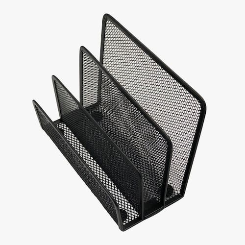 Organizador/Porta Cartas e Papeis para Mesa - Aramado Para quem deseja mais organização na sua mesa, esse porta papeis será a escolha perfeita. Contando com 3 divisórias, você não precisará mais deixar seus documentos soltos pela mesa, evitando que se perca, e garantindo um melhor desempenho no trabalho. ESPECIFICAÇÕES: -Material: Aço Aramado - Dimensões: Alt.:13,5cm x Larg.: 17,5cm x Profundidade 8,3cm -Peso: Aprox. 185g -Cor: Preto CONTÉM: 01 ORGANIZADOR/PORTA CARTAS E PAPEIS PARA MESA - ARAMADO.