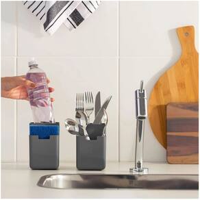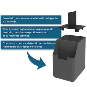 DIFERENCIAIS: Esse organizador é projetado para acomodar o tubo de detergente e a esponja, mantendo-os sempre à mão e em um local específico, evitando bagunça e desperdício de espaço na pia. Com espaço frontal estratégico, é possível armazenar colherinhas e outros talheres, facilitando o acesso e mantendo a área da pia livre de objetos espalhados. E para tornar esse organizador ainda mais versátil, ele conta com uma grade interna que, quando inserida, transforma o produto em um escorredor de talheres. Essa grade é ideal para acomodar talheres recém-lavados, permitindo que a água escorra facilmente, mantendo-os limpos e prontos para o uso.