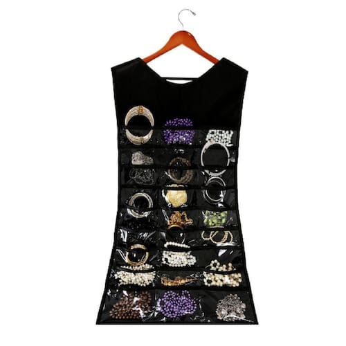Feito com tnt e pvc, resistente e macio para não danificar suas jóias. Bolsos de vinil transparente deixam suas jóias ou bijuterias visíveis permitindo fácil identificação. Compacto, com design funcional - mantém suas jóias seguras e economiza espaço. São 60 bolsos para guardar qualquer tipo de jóia - braceletes, colares, anéis, brincos ou o que você quiser Ean: 7890009041981