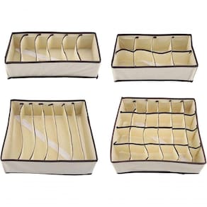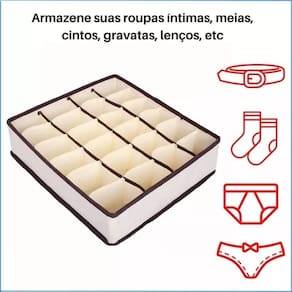 Características:Kit com 4 Peças: Inclui diversos tipos de organizadores para atender às suas necessidades.Material Durável: Fabricado em TNT bege com laterais em papelão para maior resistência.Fácil de Transportar: Dobrável e leve, pode ser levado em viagens para manter suas roupas organizadas em hotéis ou em qualquer lugar.Versátil e Funcional: Ideal para armazenar calcinhas, cuecas, meias, biquínis, sutiãs de bojo, roupas de academia, lenços e outros acessórios.Tamanhos Variados: Inclui organizadores com nichos de diferentes tamanhos para atender às suas necessidades de armazenamento.Conteúdo do Kit:1 Organizador com 24 nichos para calcinhas, cuecas, meias, biquínis, sungas - Dimensões: 32cm (L) x 32cm (C) x 9cm (A)1 Organizador com 8 nichos para calcinhas, cuecas, meias, biquínis, sungas - Dimensões: 15cm (L) x 29cm (C) x 9cm (A)1 Organizador com 6 colmeias para sutiãs de bojo, roupas de academia - Dimensões: 32cm (L) x 32cm (C) x 9cm (A)1 Organizador com 6 colmeias para sutiãs, lenços - Dimensões: 16cm (L) x 32cm (C) x 9cm (A)Dicas de Uso:Separe suas peças de acordo com o que deseja guardar.Organize-as nos nichos correspondentes para fácil acesso.Coloque os organizadores dentro da gaveta ou em prateleiras para manter tudo arrumado.Além de roupas íntimas, utilize para guardar meias, acessórios, lenços e outros itens necessários.Organize suas peças por cor, tipo ou ocasião para facilitar a escolha diária.