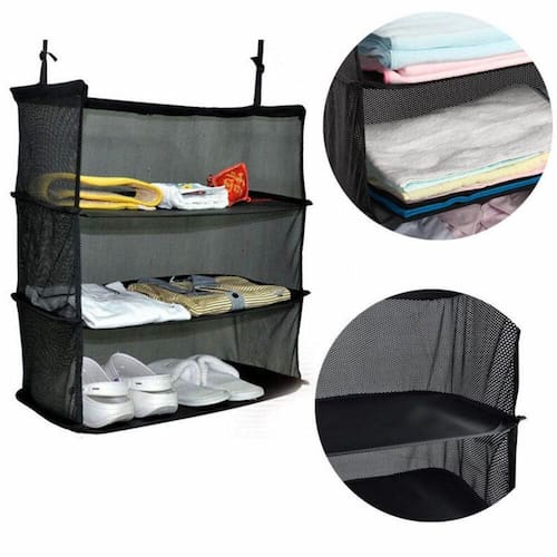 Organizador Suspenso Portátil com 3 Camadas – Praticidade para Viagens e Dia a DiaOtimize o espaço na sua bagagem e mantenha suas roupas organizadas com este Sistema de Suspensão de Bagagem Portátil. Ideal para viagens, academias ou o uso diário, ele combina praticidade, durabilidade e economia de espaço. Basta carregar as roupas em suas 3 camadas, dobrar e guardar na mala. Ao chegar ao destino, pendure diretamente no cabideiro para ter tudo à mão, sem precisar descompactar.Principais Vantagens:- Alta Durabilidade: Com um gancho grosso e resistente, suporta um grande volume de roupas sem deformar.- Ótima Ventilação: Material vazado em malha que permite circulação de ar, mantendo suas roupas arejadas.- Design à Prova d’Água: Fácil de limpar, protege seus itens contra umidade e respingos.- Economia de Espaço: Reduz até 30% do volume ocupado em sua bagagem.- Fácil Transporte: Totalmente dobrável e compacto, ideal para levar na mala ou mochila.Especificações Técnicas:Material: PoliesterDimensões: Altura: 45 cm | Largura: 46 cm | Comprimento: 27 cm.Prateleiras: 3 camadas dobráveis para fácil organização.Conteúdo da Embalagem: 1 Organizador Suspenso Cabideiro Portátil.Por Que Adquirir Este Organizador Suspenso?Simplifique sua rotina e evite o caos na bagagem. Com este organizador, você pode economizar espaço, proteger suas roupas e ter uma solução prática para acessar seus itens rapidamente. Perfeito para quem busca funcionalidade e estilo em qualquer ocasião!Organize sua bagagem com eficiência e leve mais praticidade para suas viagens! Garanta já o seu Organizador Suspenso Portátil! Marca: FAÇA E RESOLVA