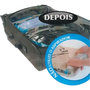 Garanta mais espaço na bagagem e proteja suas roupas contra os insetos, traças, sujeiras e odores. Este organizador oferece mais praticidade para armazenar roupas e artigos de cama ou banho. Basta guardar os itens no organizador, lacrar a abertura e conectar o seu aspirador de pó no local indicado. A sucção do aparelho fará com que o ar seja eliminado e o volume diminua consideravelmente.