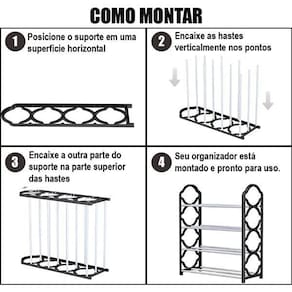 Características do Produto: - Estrutura lateral em plástico resistente e durável; - Hastes de aço que proporcionam estabilidade para até quatro andares; - Design leve e fácil de montar e desmontar; - Toque minimalista que se integra a qualquer estilo de decoração; - Ideal para armazenar e organizar diversos tipos de calçados.