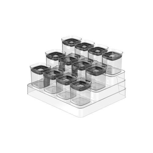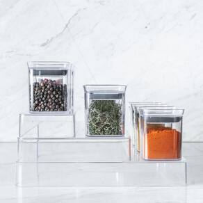 A Linha Clear é a união entre transparência e organização que independente do ambiente, promove um design perfeito para organizar e aumentar o espaço das suas gavetas. O organizador de temperos foi pensado para permitir diversas composições e proporcionar máximo aproveitamento de espaço, por isso, possui três níveis que facilitam a visualização dos temperos, além de comportar 13 potes porta temperos herméticos de 150ml's. Combine, encaixe e enxergue facilmente o conteúdo, mantendo tudo em ordem.Produzido em material resistente (Plástico PS + silicone) que proporciona alta transparência, fácil higienização e praticidade na hora de organizar. A linha Clear é indispensável para auxiliar você na organização da sua casa.INFORMAÇÕES TÉCNICASDimensões: LxAxP: 25x17,7x29 cm.Material: PSCUIDADOSEste produto é BPA FREE, não pode ser levado ao freezer ou ao micro-ondas. Sugere-se higienizar com sabão neutro e esponja macia, evitando produtos abrasivos no processo de limpeza.CONTEÚDO DA EMBALAGEM 1 Organizador de Temperos Multinível Block 13 peçasSOBRE NÓSSomos apaixonados pelo que fazemos e utilizamos o design como meio de fazer você se sentir em casa onde estiver.Criamos produtos com carinho e cuidado para atender as suas necessidades diárias, levando bem-estar, aconchego e conforto para seu lar.Somos minimalistas e funcionais pois queremos que você tenha um estilo de vida mais leve e organizado, para atingir o máximo do seu potencial.Prazer, somos Ou.
