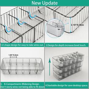 ??Design prático?: Em comparação com a caixa organizadora de cabos de fios tradicionais, projetamos uma ranhura em forma de U, com o objetivo de facilitar o depósito e a retirada dos dados. E 6 departamentos foram ampliados e aprofundados, então não se preocupe com o fato de seus cabos não poderem se encaixar.