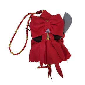 Material composição: Feltro, enchimento de espuma, pedra olho de gato, pérolas.