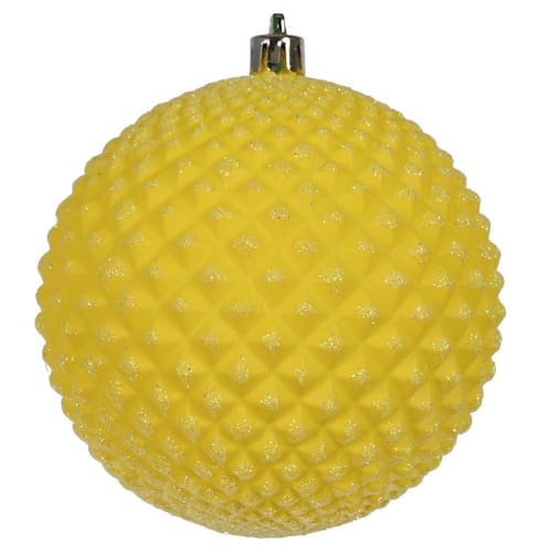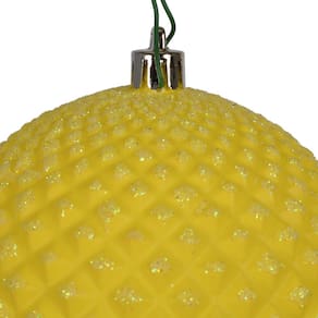 Enfeite de bola de glitter amarelo Durian de 4 polegadas da Vickerman. Inclui 6 ornamentos por pacote.
