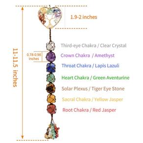 Pedras preciosas feitas à mão com cristais de Feng Shui para janela e carro, enfeite de pendurar para decoração de casa e festa (formato de coração) - [7 cristais de cura chakras]: quartzo cristal transparente, ametista, lápis-lazúli, aventurina verde, olho de tigre, jaspe amarelo, ágata vermelha. Tamanho da árvore da vida: 4,5 cm, tamanho das pedras roladas: 1,8-2,5 cm, tamanho das pedras lascadas: 5-8 mm. Comprimento total: 28-29 cm - Os chacras são os centros da enetgia, localizados na linha média do corpo. Cada um dos 7 chakras representa um estado físico, emocional ou mental, ajudando a enriquecer o espírito e o bem-estar, as pedras dos chacras são usadas para equilibrar os chakras diariamente e melhorar a cura dos chakras. - Enfeite feito à mão para árvore da vida, envolva o fio de cobre na forma de uma árvore da vida e amarre as pedras perfuradas como os galhos da árvore à mão. - A árvore da vida com suas sementes, ramos e raízes significa a árvore genealógica. Ela infundirá abundância e prosperidade em sua vida. Quando você usá-la, promove beleza, saúde, boa sorte e cura. - Cada pedra preciosa natural é única. A cor e a textura da pedra preciosa real podem mostrar uma ligeira diferença.