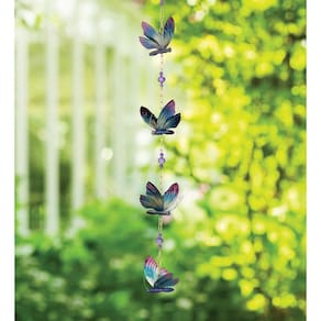 Melhore seu espaço ao ar livre com este enfeite de jardim suspenso. Feito de metal durável, este enfeite decorativo suspenso gira com a brisa, adicionando cores vibrantes ao seu quintal ou pátio. Perfeito para decoração de exteriores, é indispensável para quem procura decoração e arte de jardim.