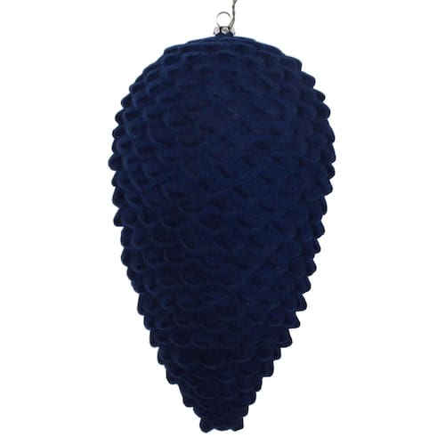 Enfeite de Natal de pinha flocada azul meia-noite Vickerman de 10"