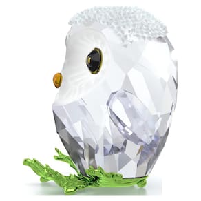 Swarovski Idyllia Baby Owl - Tamanho: 1 3/4 x 1 1/2 x 1 1/5.1 cm - Com seus olhos arregalados brilhantes e cabeça coberta de neve, esta coruja bebê é irresistivelmente charmosa - Inspirado na família Idyllia, o ornamento é feito de 226 facetas e aproximadamente 420 pedras de cristal - A coruja fica sobre um galho que é formado de metal com um acabamento de superfície verde - Uma peça encantadora que certamente trará alegria à decoração da sua casa - Objeto de decoração. Não é um brinquedo. Não é adequado para crianças menores de 15 anos.