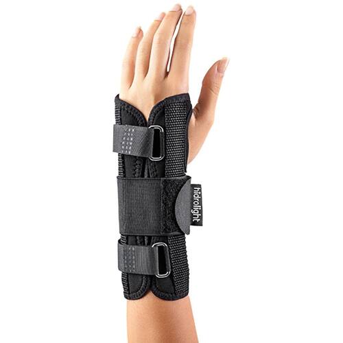 Órtese para Punho Confort Esquerda Hidrolight possui bolso interno que oferece maior conforto na hora do ajuste do produto, permitindo ao paciente, que o faça sem auxílio. A tala abaixo do punho e as duas hastes flexíveis na lateral, oferecem segurança na compressão sem limitar competamente os movimentos da articulação em tratamento. O ajuste do produto fica a critério e necessidade do paciente, através dos três fechos aderentes, sendo um elástico. Retém o calor devido ao material em neoprene, mantendo a região aquecida e auxiliando no alívio da dor. Indicações: Tratamento de patologias como: síndrome do túnel do carpo, tendinites, tenossinovites, lesões ligamentares, reabilitação de fraturas de punho e antebraço e afecções leves do punho que necessitam de imobilização parcial da articulação. CONSULTE UM ESPECIALISTA. Tamanho: PP/P 11cm - 17cm /M 17cm - 20cm /G/GG 20cm - 26cm Autorização e Cadastro ANVISA: 8.07.582-1 / 80758210002