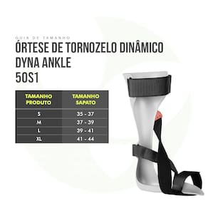 Descrição Comercial: Órtese do tipo invólucro de estabilidade com formato dorsomedial e posição de pronação integrada, a Dyna Ankle foi desenvolvida para uso em apoio em tratamento conservador das fraturas do ligamento talofibular e calcaneofibular anterior no tornozelo. Proporciona trambém proteção pós-operatória após reparo e reconstrução ligamentar. Benefícios: Coloca o pé em pronação moderada e dorsiflexão. A restrição dinâmica limita continuamente a flexão e supinação plantares. Limita a rotação. Recursos: Concha de estabilidade dorsomedial com posição de pronação integrada; Para ser aplicado imediatamente após a lesão, deixando o maléolo lateral livre; O gelo pode ser aplicado com a órtese no lugar; Pode ser utilizado com um sapato; Também deve ser utilizado à noite por segurança; À prova d'água; Fácil de limpar.