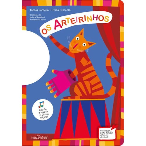 p Os Arteirinhos adoram brincar de se esconder... /p p Quem são eles? /p p São três e aparecem na xícara de café, são quatro e pulam na tigela do gato... /p p O texto é simples e rítmico e se torna um jogo para aprender a contar e reconhecer os dedos da mão. /p p O livro de capa dura tem um recorte redondo bem no meio, criando um buraco que permite inserir sua mão e interagir com as crianças durante a narração usando seus dedos. /p p Páginas coloridas e uma história cheia de rítmo para ler em voz alta vão divertir as crianças. /p p Ao final, use seu smartphone para decodificar o QR code presente na última página e ouça a música dos Arteirinhos! /p p Pela mímica a criança tem que adivinhar quem é... e a diversão está garantida! /p