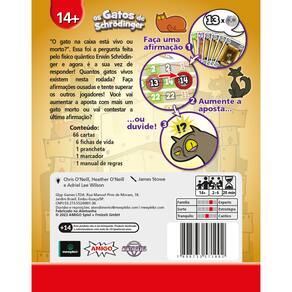 A incerteza não matou o gato, mas isso não significa que ele não está morto. Dr. Erwin Schrödinger e Werner Heisenberg nos ensinaram isso. Todos nós já ouvimos sobre os experimentos de gatos em caixas e talvez até tenhamos curiosidade sobre os resultados – mas tentar essa experiência seria insano na vida real! Os Gatos de Schrödinger é um jogo divertido que brinca com a ideia da física quântica e os paradoxos do gato de Schrödinger! A cada rodada, cada jogador tenta determinar o número mínimo de gatos vivos, gatos mortos ou caixas vazias em todas as caixas no laboratório de Schrödinger. Você aposta em certas possibilidades, usando regras simples: escolha cartas que alteram o estado do seu gato, mas cuidado, pois tudo pode não passar de um blefe! Até você observar (revelar) o resultado final, tudo ainda pode estar em dois estados ao mesmo tempo, criando um clima de incerteza divertido e cheio de suspense. O vencedor é quem conseguir controlar melhor essas possibilidades, chegando mais perto de alcançar seus objetivos e “colapsar” a incerteza a seu favor. Quer se divertir pensando e jogando de forma criativa? Então, “Os Gatos de Schrödinger” é perfeito para experimentar conceitos científicos de uma maneira leve e cheia de risadas. Prepare-se para criar múltiplas realidades ao mesmo tempo e descobrir que, no mundo quântico, tudo pode acontecer! Está pronto para colocar sua intuição à prova e explorar o universo de um jeito totalmente diferente? Você pode não estar seguro de que sua hipótese é válida, mas se você ama gatos, ciência, jogos de blefe e dedução, você terá certeza de adorar o jogo de cartas de Os Gatos de Schrödinger! Cartas tamanho 56 mm x 87 mm.