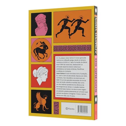 saac Asimov - um dos maiores autores a pensarem no futuro e nos destinos da humanidade - e os segredos da grande civilização grega! Em Os gregos, Isaac Asimov é nosso guia pela história da civilização grega, desde os tempos micênicos (4.000 A.C) até a formação da Grécia atual (1964 de nossa era), destacando os principais aspectos dessa cultura que estabeleceu as bases artísticas, filosóficas e políticas do Ocidente. Isaac Asimov é autor de obras como Fundação, Eu, robô e O fim da eternidade. Nasceu em 1920, na Rússia, mas naturalizou-se americano em 1928. Foi um dos grandes expoentes da Era de Ouro da ficção científica mundial, tido como um dos maiores apoiadores da ciência e da tecnologia de seu tempo. A coleção História Universal Isaac Asimov nos leva a uma viagem ao passado, guiada justamente por um autor que sempre nos ajudou a imaginar o futuro. Asimov faleceu em 1992, aos 72 anos.