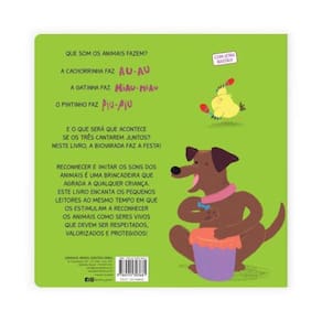Que som os animais fazem? A cachorrinha faz au-au. A gatinha faz miau-miau. O pintinho faz piu-piu. E o que será que acontece se os três cantarem juntos? Neste livro, a bicharada faz a festa! Este livro estimula o desenvolvimento da linguagem oral, ampliando o repertório linguístico das crianças através dos nomes e dos sons dos animais. Leitura instigante e divertida que trabalha a associação do texto com sons, ensinando sobre os animais de forma simples e divertida. Um jeito diferente também para pais e educadores trabalharem a audição, a percepção e a oralidade.