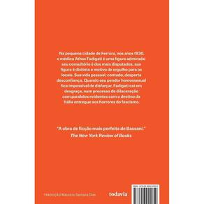 Publicado em 1958, este é o primeiro de cinco livros sobre Ferrara, cidade italiana onde o autor viveu. O médico Athos Fadigati é uma figura admirada. Quando seu pendor homossexual fica impossível de disfarçar, Fadigati cai em desgraça, num processo de dilaceração com paralelos evidentes com o destino da Itália entregue aos horrores do fascismo. Bassani pertence a uma extraordinária geração de autores judeus italianos, como Natalia Ginzburg e Primo Levi.