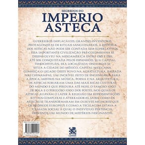 Guerreiros implacáveis. Grandes inventores. Protagonistas de rituais sanguinários. A história dos astecas não pode ser contada sem superlativos. Essa importante civilização pré-colombiana se desenvolveu na Mesoamérica entre 1325 e 1521, até ser conquistada pelos espanhóis. Sua capital, Tenochtitlán, era localizada onde hoje se situa a cidade do México, capital mexicana.Conheça o legado deste povo na agricultura, baseada nas Chinampas, um incrível feito de engenharia para a época. mestres na música, poesia e na arquitetura, os astecas forjaram uma das mais ricas culturas do mundo e que perdura até hoje. o famoso jogo de bola e o perigoso jogo dos postes, nos quais os astecas aliavam o lazer à religião em representações rituais complexas e aterradoras. Saiba como os astecas se transformaram em ourives melhores que os próprios europeus e como a tecelagem ditava a camada social à qual o indivíduo pertencia. Desvende um mundo de mistérios fascinantes. Ean: 9786580921423