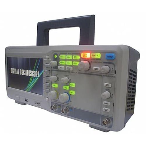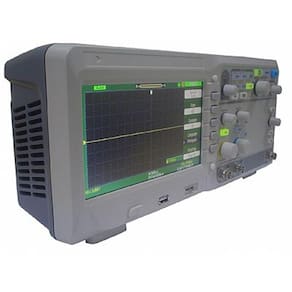 OSCILOSCÓPIO DIGITAL DE 300MHZ - 2 CANAIS 2GS/S MOD. OD-290   DESCRIÇÃO: Osciloscópio digital de 300mhz - 2 canais 2gs/s mod. od-290   APLICAÇÕES: Desenvolvimento e teste em circuitos eletrônicos. Visualização instantâneas de sinais. Testes em laboratórios e indústrias. Medição e controle industrial Área de serviços e manutenção   ESPECIFICAÇÕES TÉCNICAS: Display de LCD TFT de 7" COLORIDO Largura de banda: 300MHz Canais: 2CH + 1EXT (Trig) Taxa de amostragem em tempo real: 1GSa/s (cada canal). 2GSa/s (meio canal). Taxa de amostragem equivalente: 50GSa/s Capacidade de memória: 24 Kpts Tempo de subida: < 1.7ns Impedância de entrada: 1M? || 13pF, 50? Base de tempo: 1.0ns/div - 50s/div. Sensibilidade vertical: 2mV a 5v/Div. Resolução vertical: 8 bit Fontes de disparo (Trigger): CH1, CH2, CH3, CH4, EXT, EXT/5, AC Line Tipos de disparo (Trigger): Limite, pulso, vídeo, rampa, alternativo Operações matemáticas: +, - , * , / , FFT, inversão. Filtro digital: Passa alta, Passa baixa, Passa banda, Parada de banda. Voltagem máxima de entrada: 400V Vpp. Armazenagem interna: 4 grupos de referência de formas de ondas, 20 grupos de configurações, 20 grupos de formas de ondas. Armazenagem externa: Imagens, documentos CSV, arquivo de formas de ondas e arquivos de configurações.  Idiomas: Português, Inglês, Francês, Alemão, Russo, Espanhol, Chinês simplificado, Chinês tradicional, Japonês Coreano, Italiano e Árabe. Interface: USB Host, USB Device, LAN, Pass/Fail Alimentação: AC 100-240V 45 Hz a 440Hz, 50VA Max.   ACESSÓRIOS FORNECIDOS: Manual de Instruções 1 - Par de ponta para teste 1 - Cabo USB 1 - Cabo de alimentação  Software