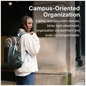 O compartimento interno principal possui uma capa para laptop que se encaixa na maioria dos laptops de , tablets e capas para documentos. Bolso de organização com fecho de correr com clipe para chave, bolsos em rede e bolso com fecho. Bolso de enfiar em malha elástica no painel frontal para itens de acesso rápido e fácil. Loops de painel frontal piscante duplos e loop de painel de luznte separado. Bolso pequeno com zíper com forro resistente a arranjos e bolsos duplos para garrafas de água Marca: Não Informado
