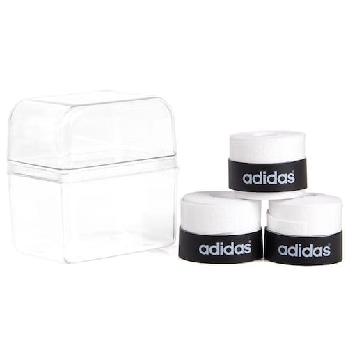 - Detalhamento: Overgrip branco para raquetes de padel e beach tennis, superfície texturizada que se assemelham a microperfurações, pack com 3 unidades, específico para conceder máxima sensibilidade à raquete, com fita de fechamento autoadesiva preta e com a escrita Adidas branca.